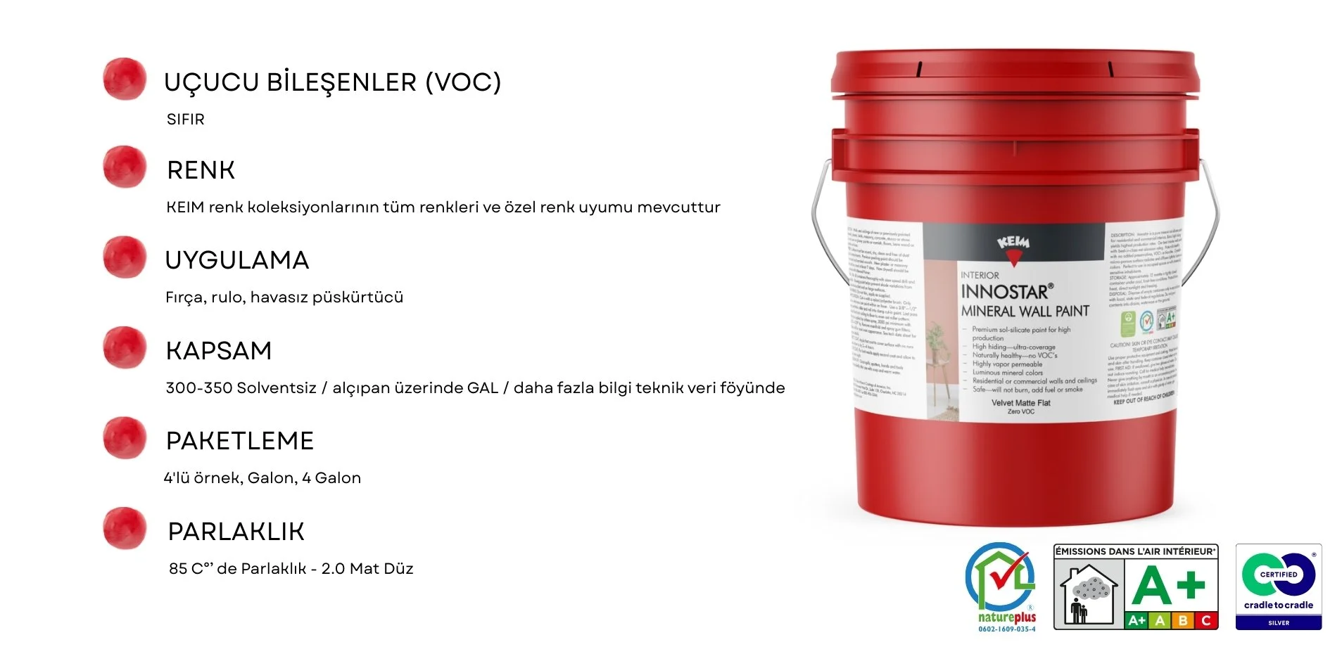 Geleceği İnşa Ediyoruz: 2022'den bu yana KEIM ürünleri Cradle to Cradle Certified® Gümüş sertifikasına sahiptir. 2024 itibarıyla sertifikalı ürün sayımız 80'e yükselmiş olup, bu rakam küresel boya satışlarımızın %85'inden fazlasını oluşturmaktadır. KEIM, inşaat sektöründe çevre bilincinin öncüsü olmaya devam ediyor. Bize oy veren herkese teşekkür ederiz!