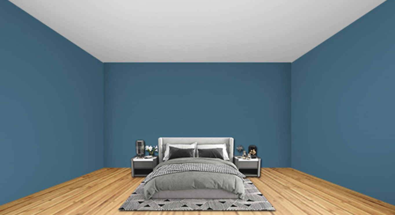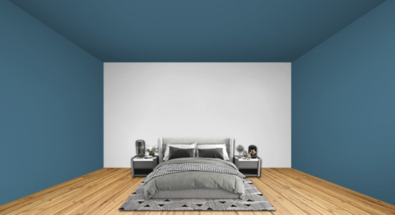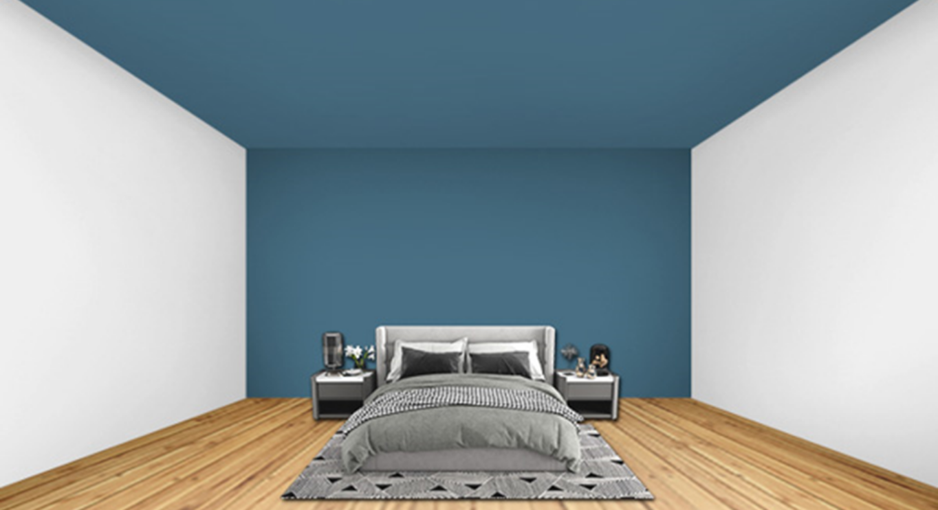 2- Koyu Renkli Tavan ve Tek Duvar: Tavan yüksekliği fazla olmayan, ancak geniş bir odayı dengelemek için, tavanı ve bitişik duvarlardan birini koyu renge boyamak, mekânın yüksekliğini daha dengeli ve uzamış gibi gösterebilir. Bu cesur bir hamledir ancak doğru uygulandığında oldukça etkilidir.